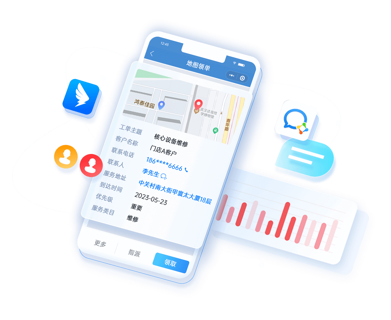 • 服務后的客戶通過電話/短信回訪,監管外勤服務質量,提升客戶滿意度